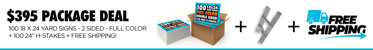 100 18x24 Full Color Yard Signs with Stakes – $395 | Free Shipping