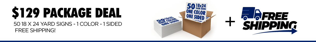This package includes 50 single-sided 18"x24" yard signs printed in one color, offering a practical solution for short-term promotions, directional signage, or event advertising. Printed on strong 4mm corrugated plastic, these signs provide reliable outdoor performance while keeping your costs low.